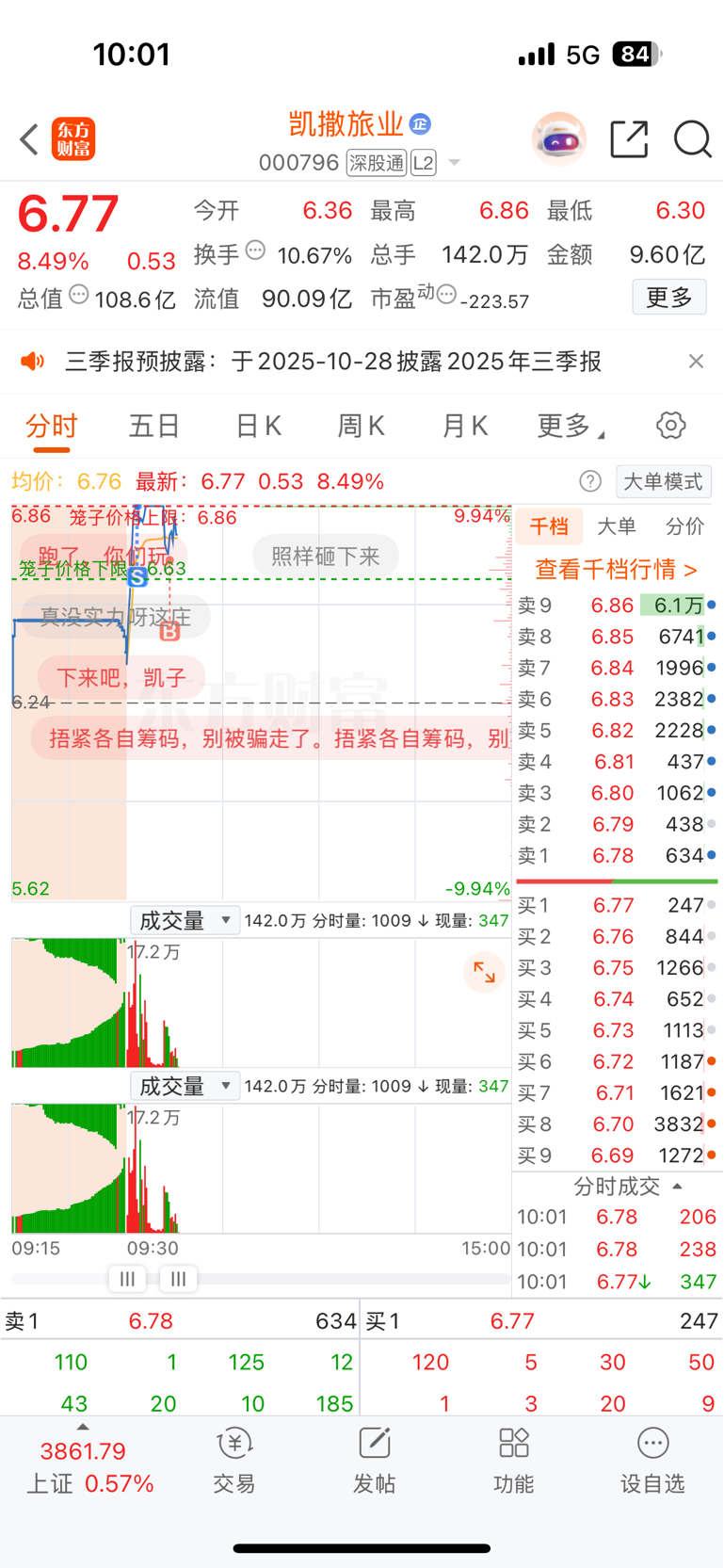 $凯撒旅业(SZ000796)$ 跟着主力做多,涨停出,回落买