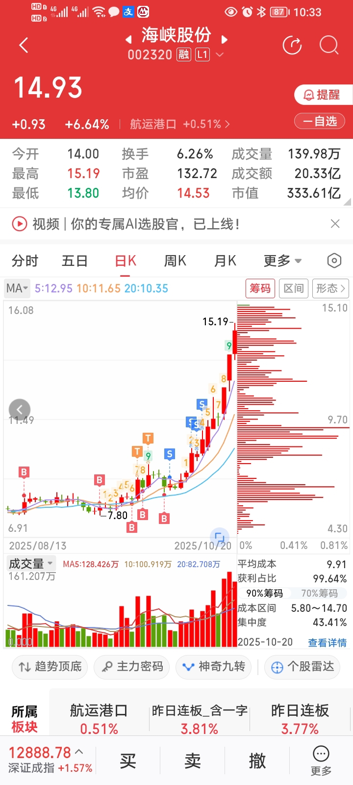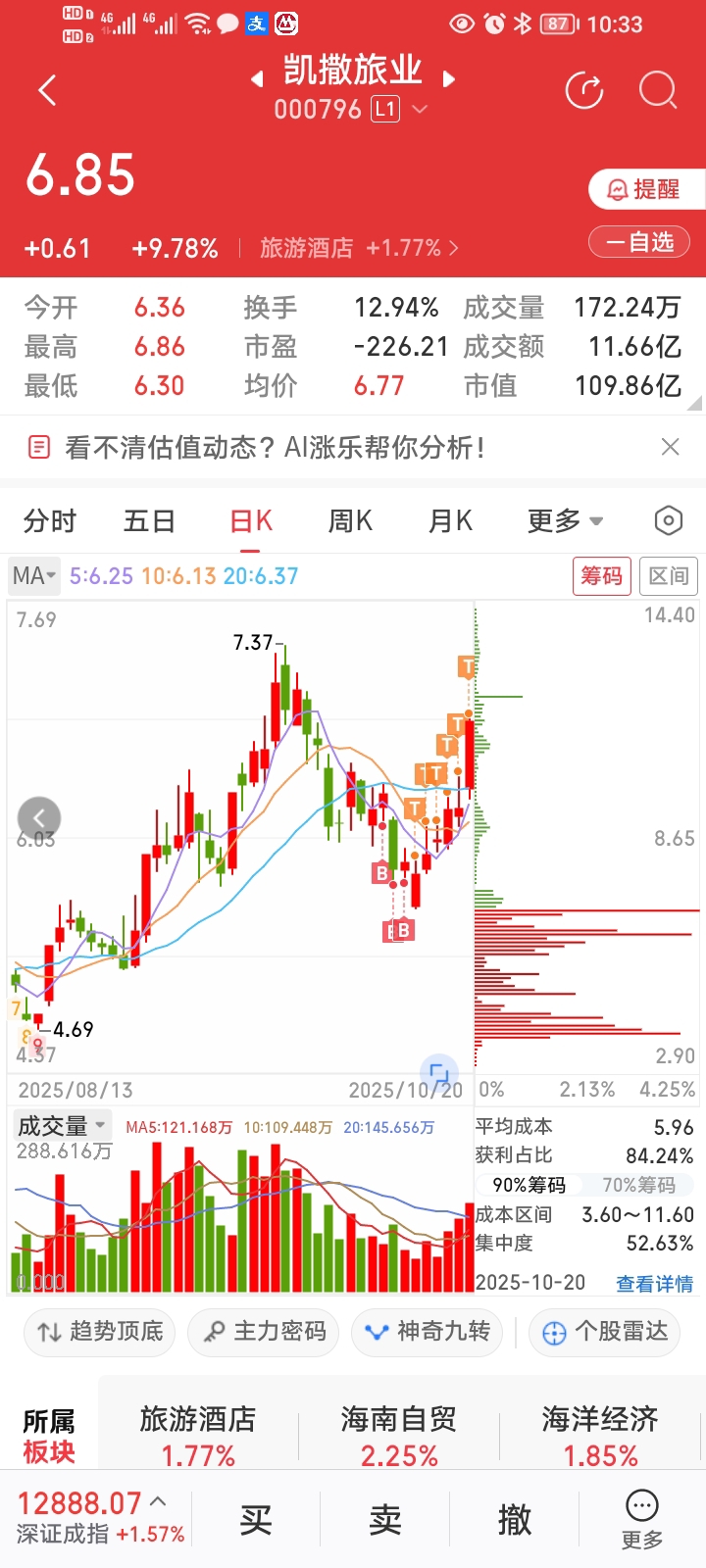 $凯撒旅业(SZ000796)$ $海峡股份(SZ002320)$ 换仓错过海峡50个点,就看凯撒大帝能不能给我硬起来了