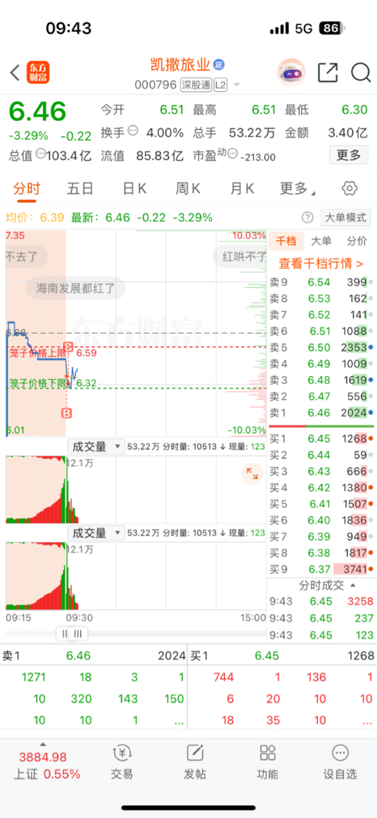 $凯撒旅业(SZ000796)$ 谢谢主力给机会买进,做做踢真爽