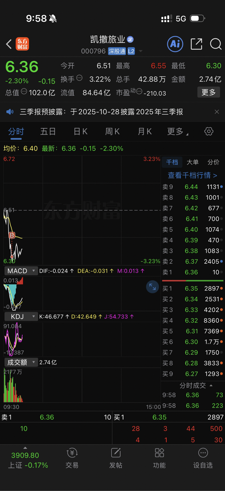 $凯撒旅业(SZ000796)$ 感觉又被套了