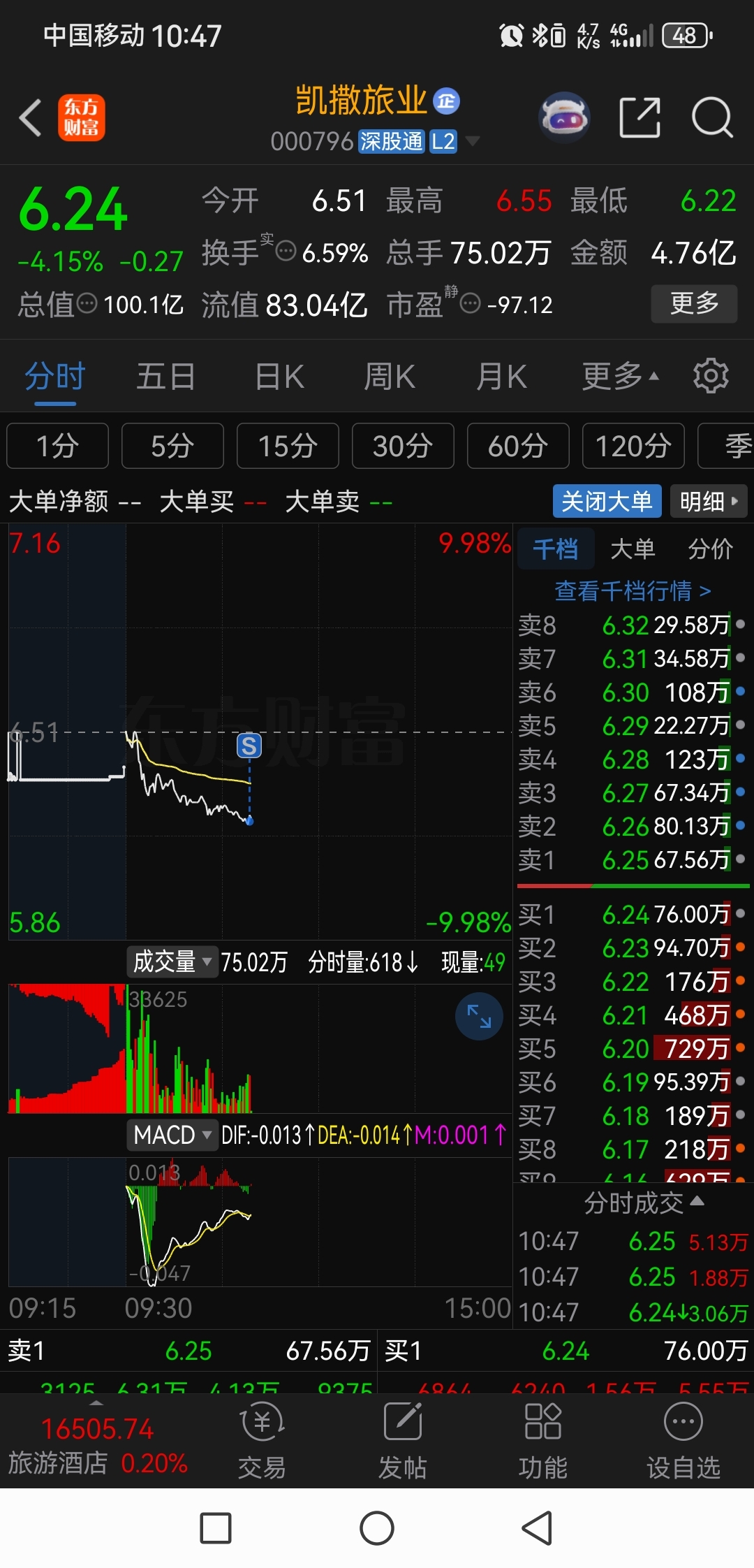 $凯撒旅业(SZ000796)$ 溜了溜了