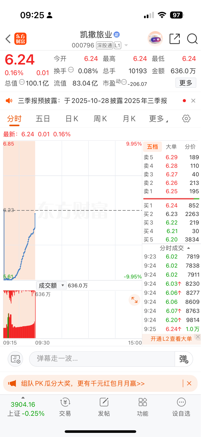 $凯撒旅业(SZ000796)$ 炒股10年了,第一次见这种,从跌停拉起来是什么意思,为了什么?