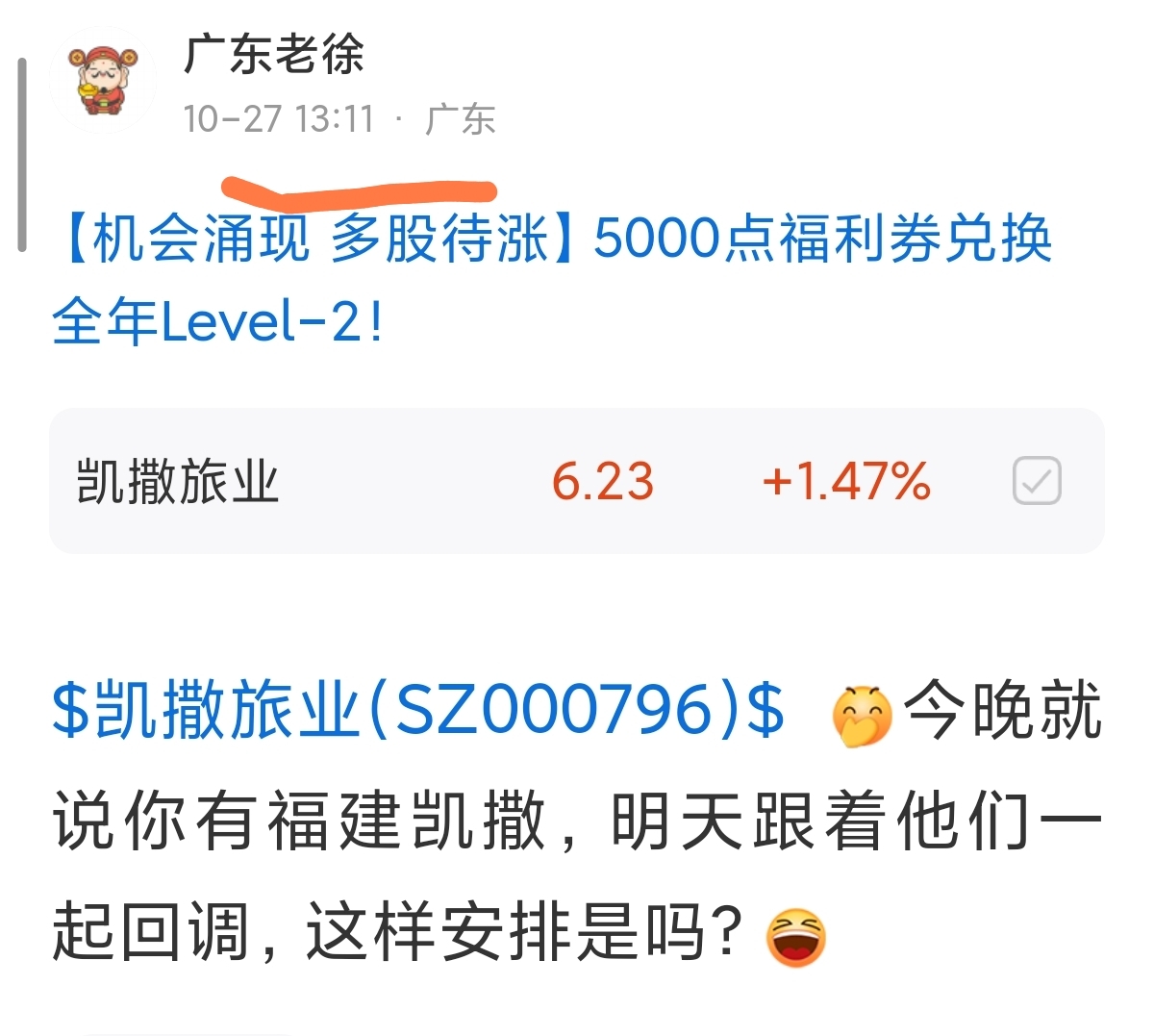 $凯撒旅业(SZ000796)$ 真准呐