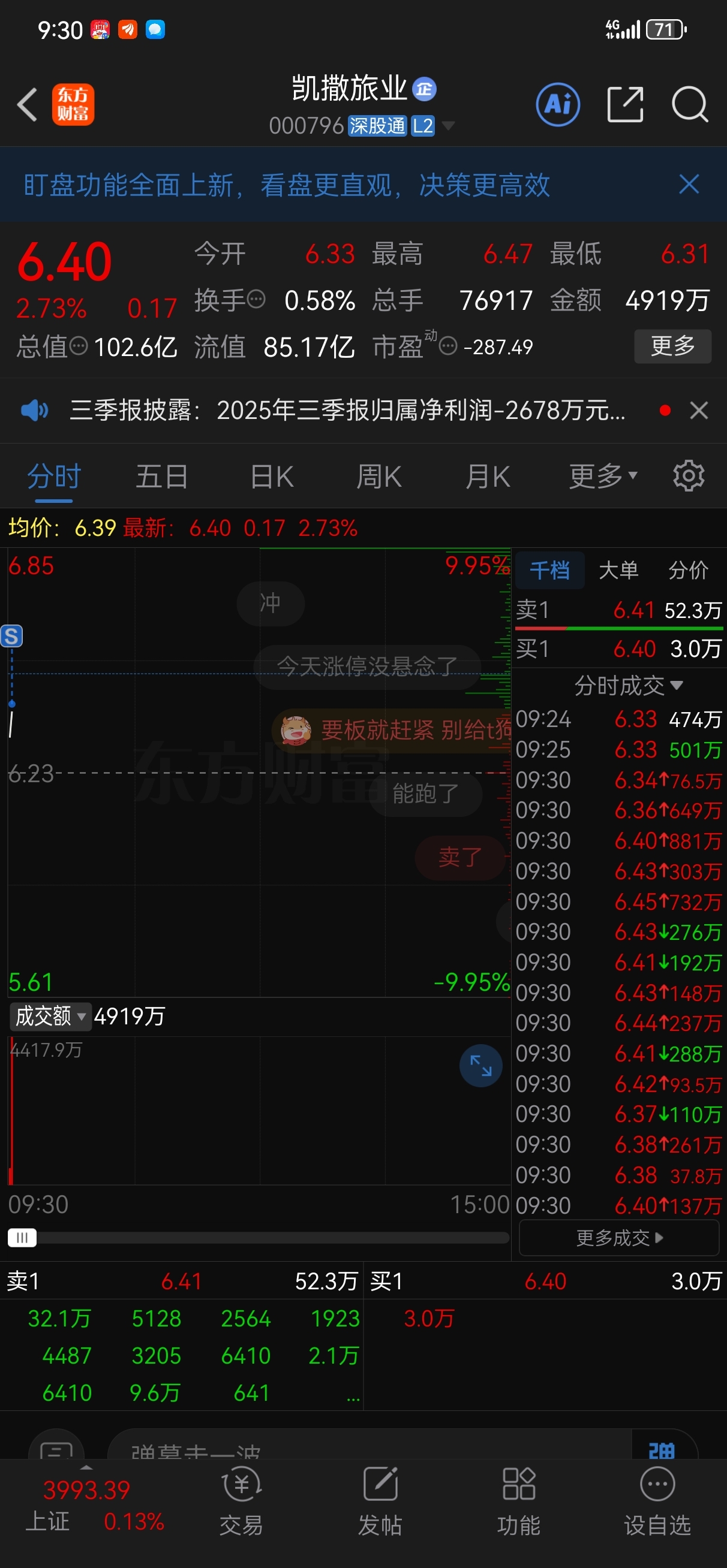 $凯撒旅业(SZ000796)$ 今天卖你买了海峡,算我今天牛逼了哈哈