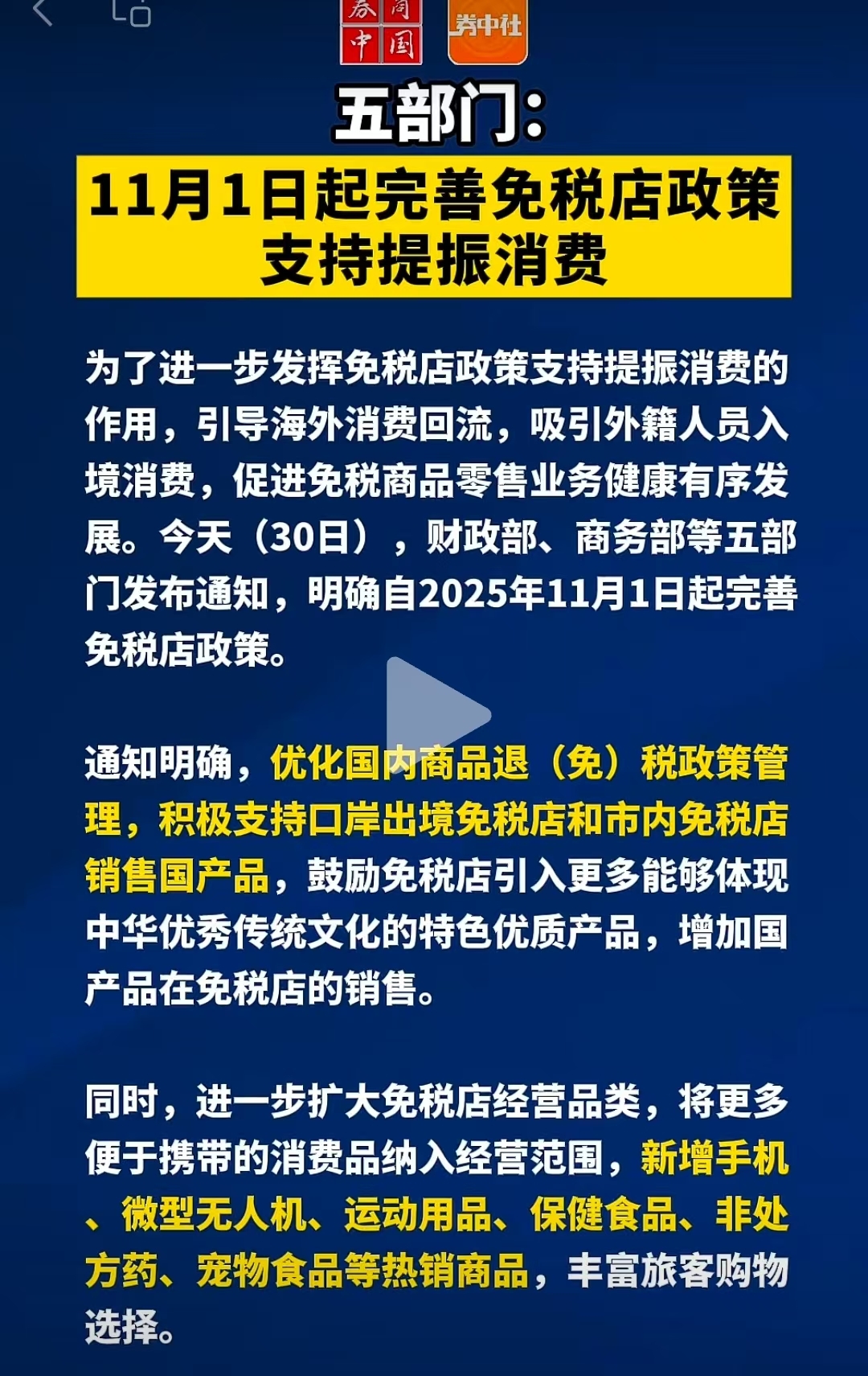 明天上午11点海南自贸港发布会。11月1日完善免税店新政提升人流量与销售量!