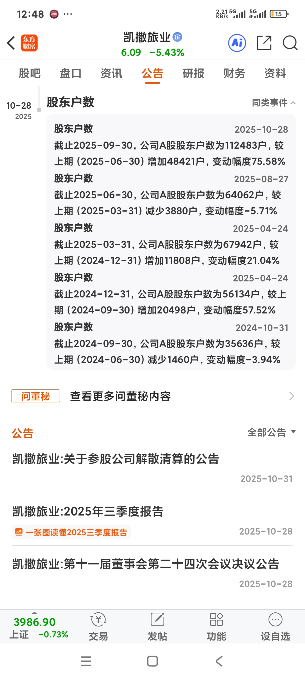 $凯撒旅业(SZ000796)$ 牛逼啊,散户增加了这么多,这是要把公司全卖给散户。