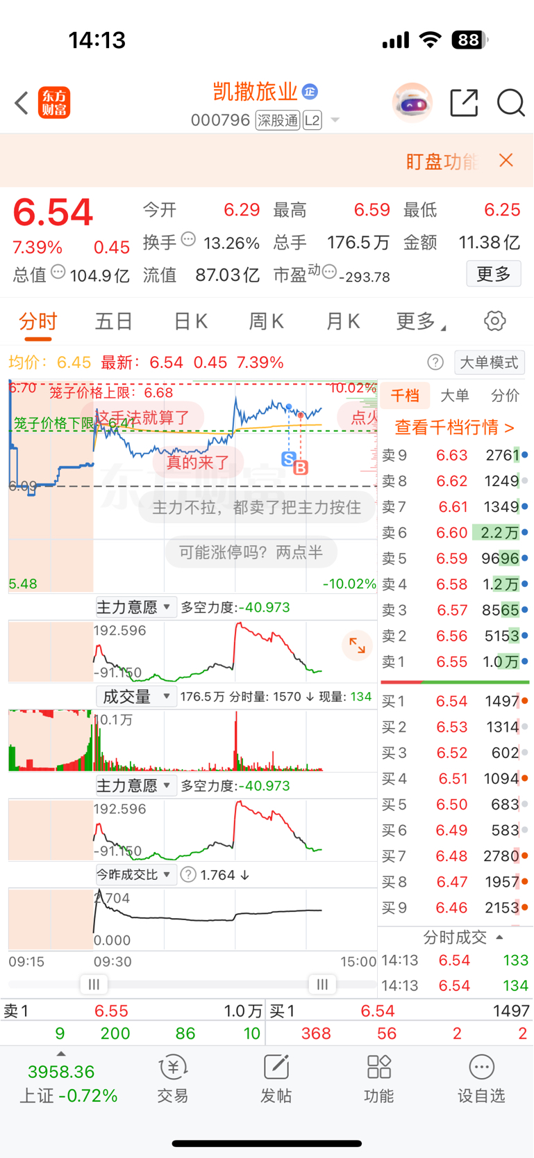 $凯撒旅业(SZ000796)$  6.55卖6.5接回来太强了怕卖飞