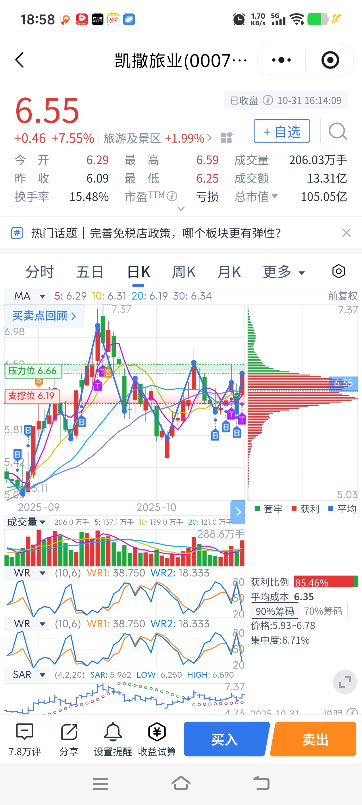 $凯撒旅业(SZ000796)$ 看 着B,T,S点都还行就是钱没挣多少