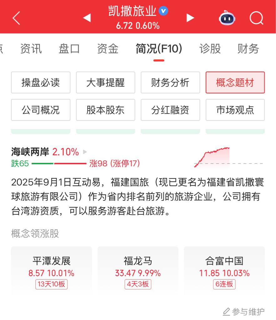 $凯撒旅业(SZ000796)$ 大家一起去维护加入海峡两岸题材,早上晶雪节能都能秒板