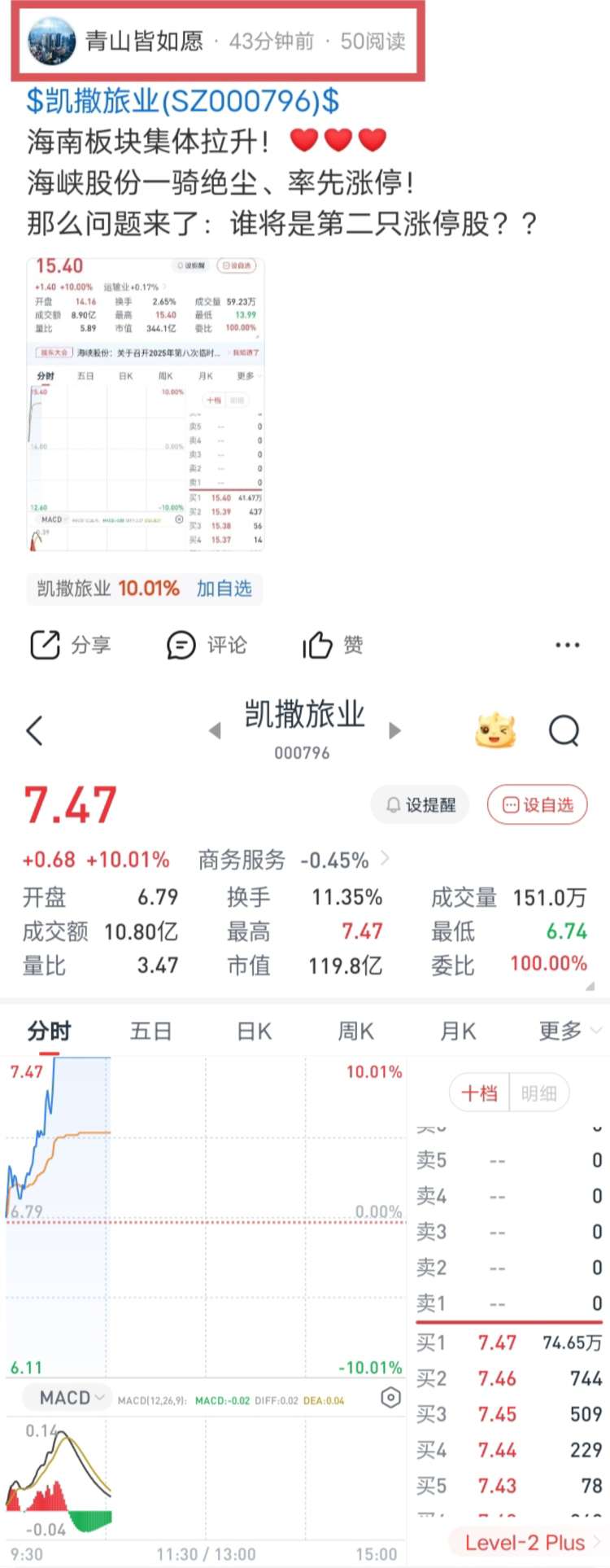 又、双、叒、叕、准确预测!今早重点提示【凯撒旅业】,而话音刚落,【凯撒旅业】已涨