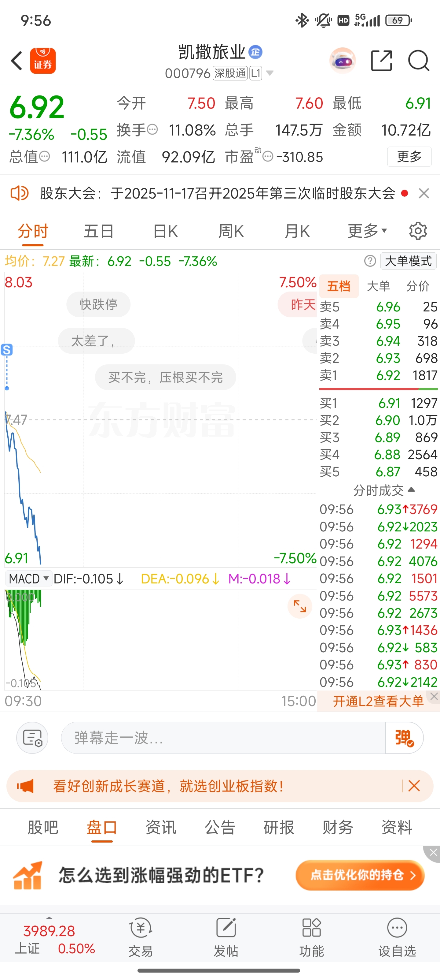 $凯撒旅业(SZ000796)$ 早上竞价有人抢跑,我就看出走势了