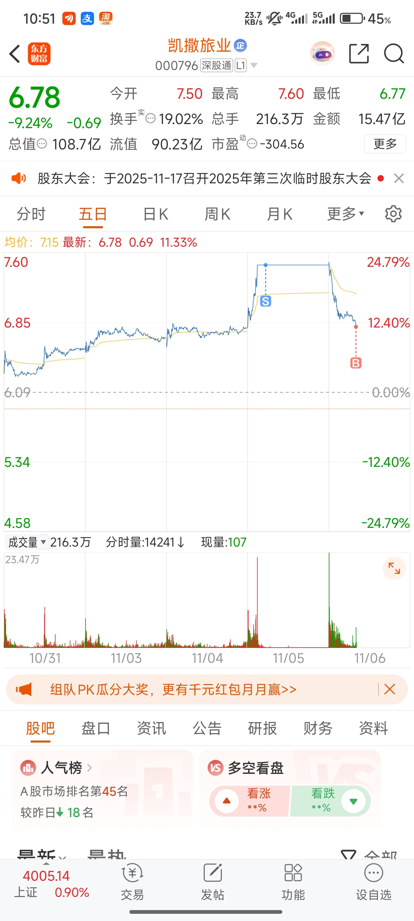 $凯撒旅业(SZ000796)$ 今天的股价已经在谷底了,再怎么走都是向上(emmmmmm)