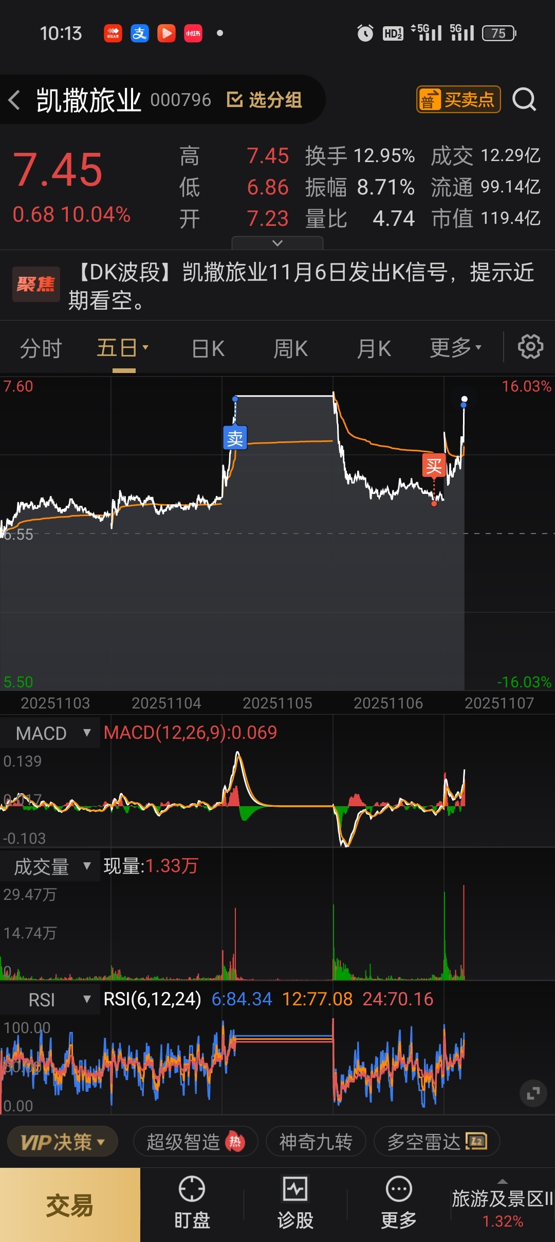 $凯撒旅业(SZ000796)$ 股票就是高抛低吸的游戏