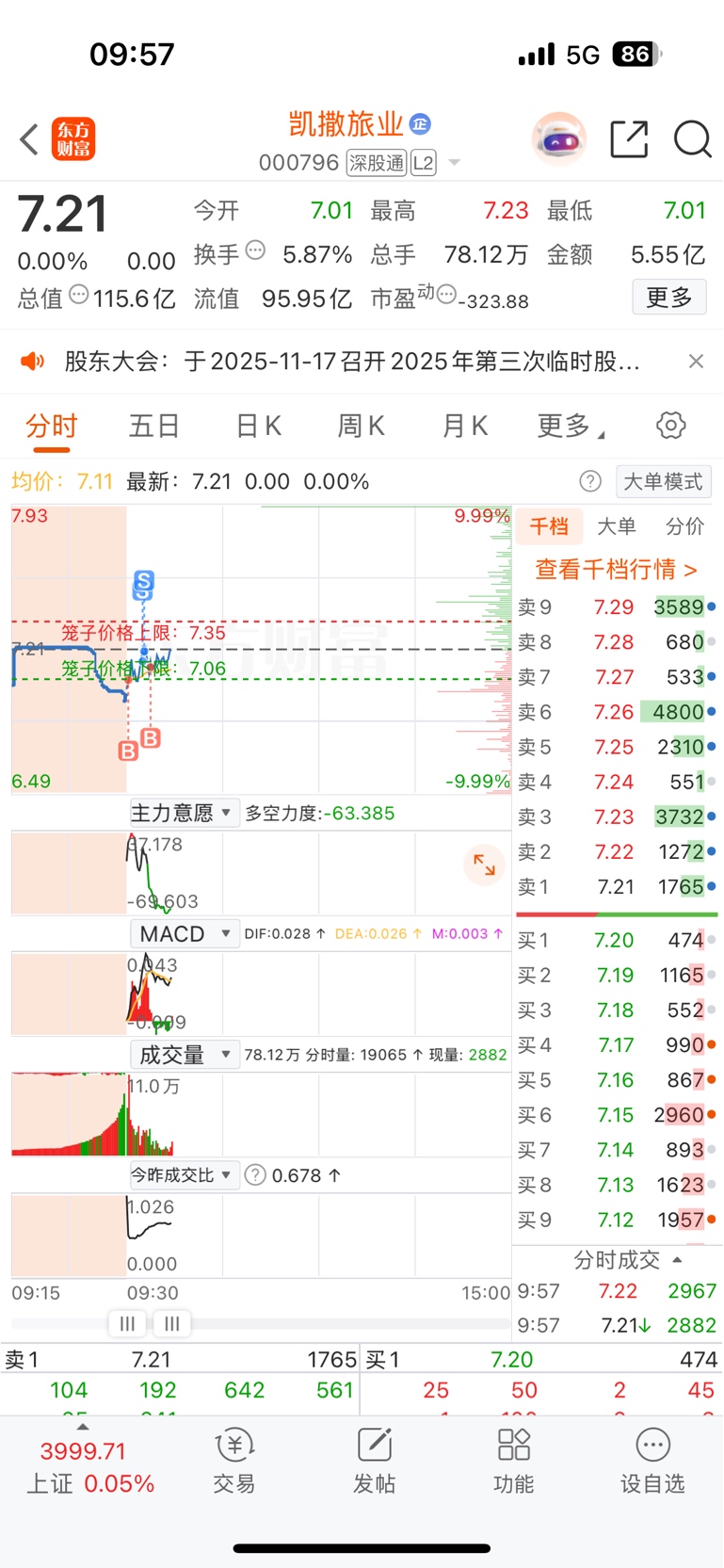 $凯撒旅业(SZ000796)$ 开盘7.04买进追7.2出做的手忙脚乱的