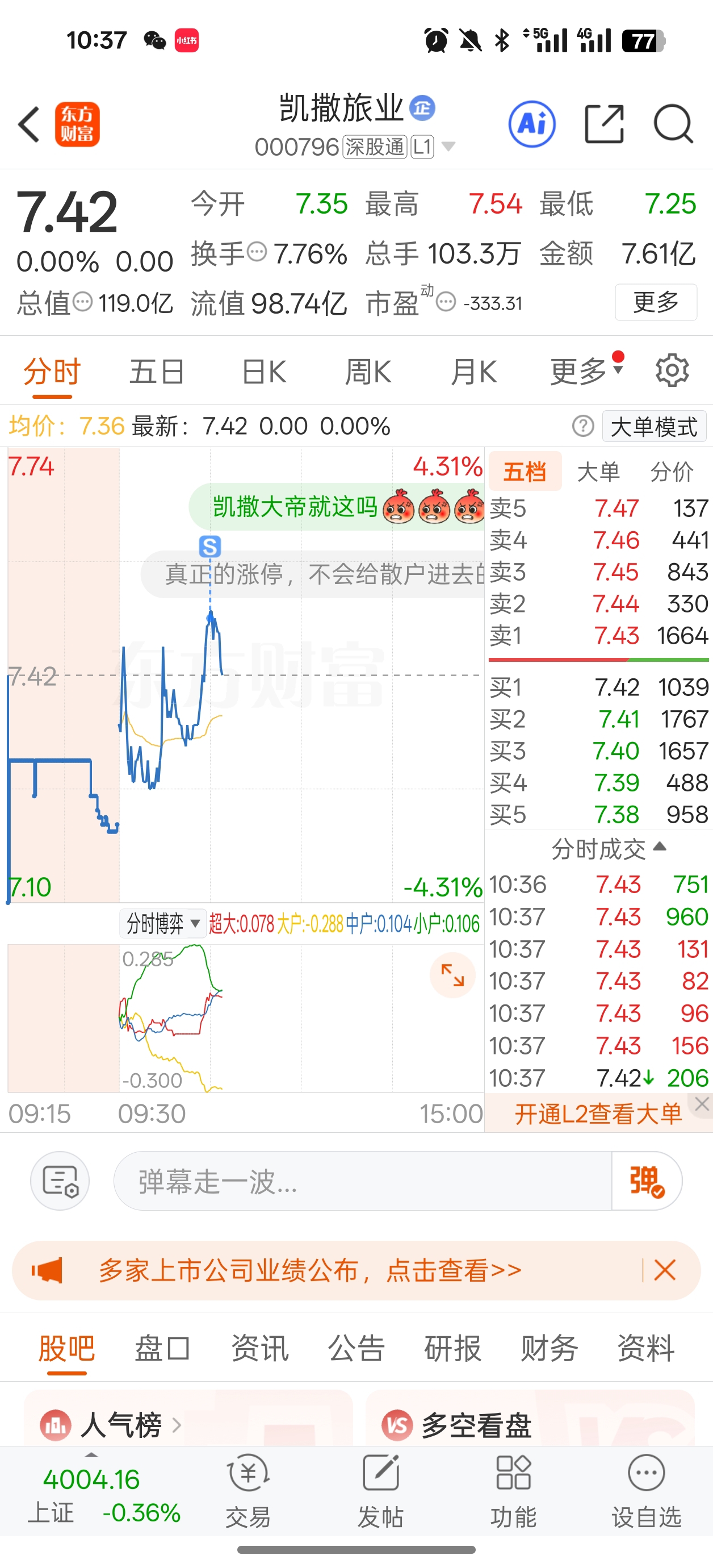 $凯撒旅业(SZ000796)$ 走了跑路了,兄弟们,准备涨停了