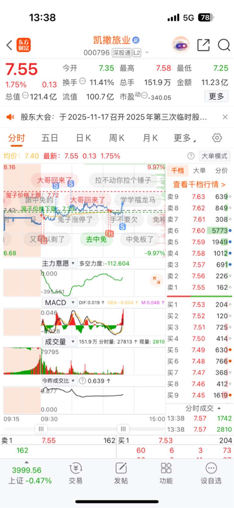 $凯撒旅业(SZ000796)$ 一天踢2次