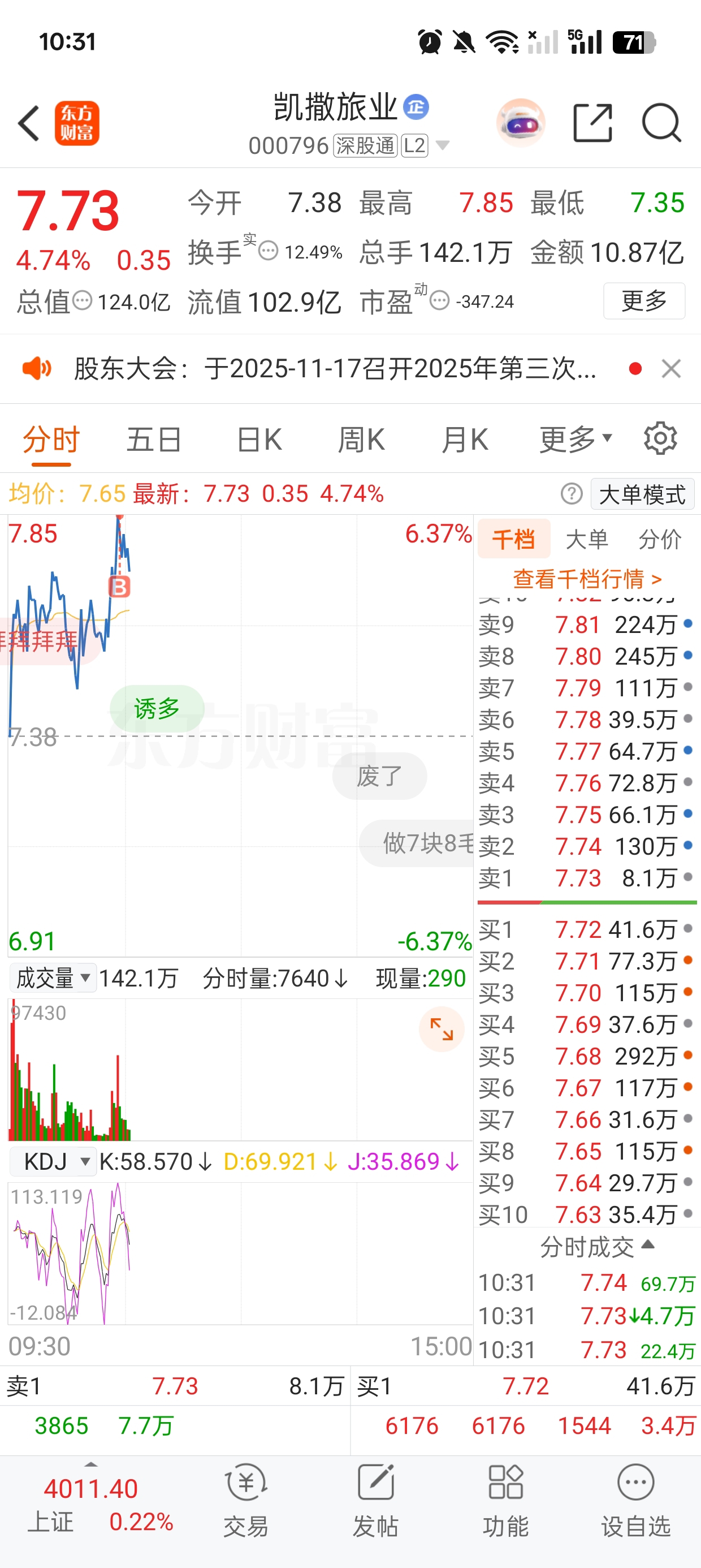 $凯撒旅业(SZ000796)$ 我买崩了?