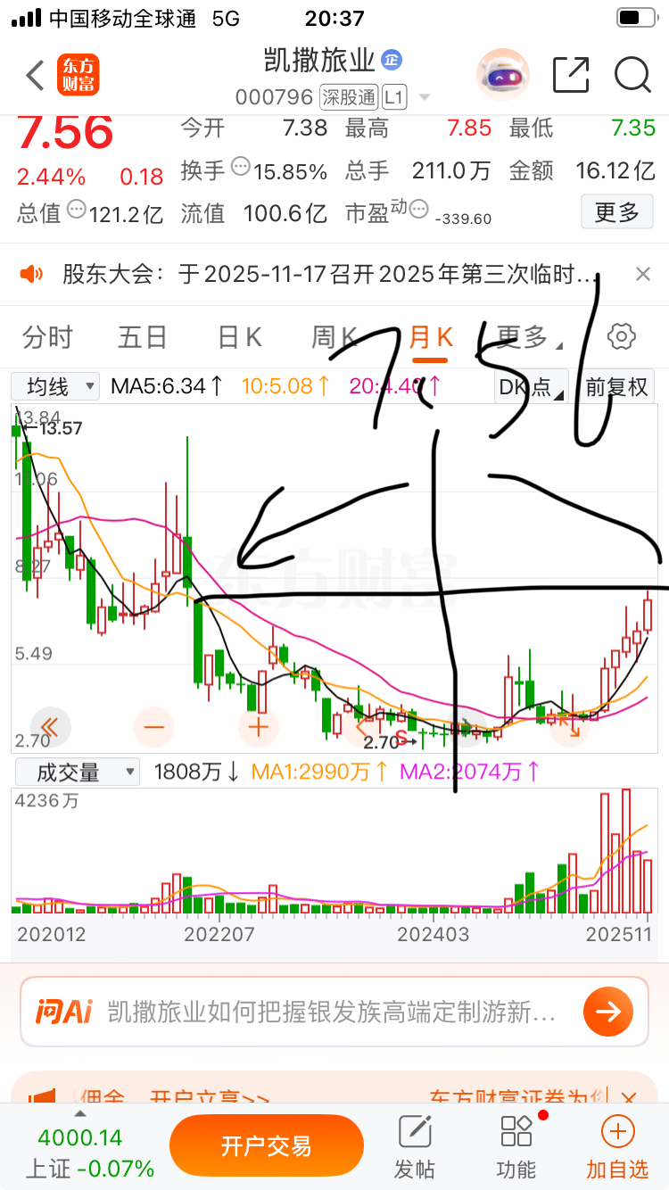 $凯撒旅业(SZ000796)$ 根据镜像原理,马上要涨到9.14了,大家明天抓紧冲,来不及了!!