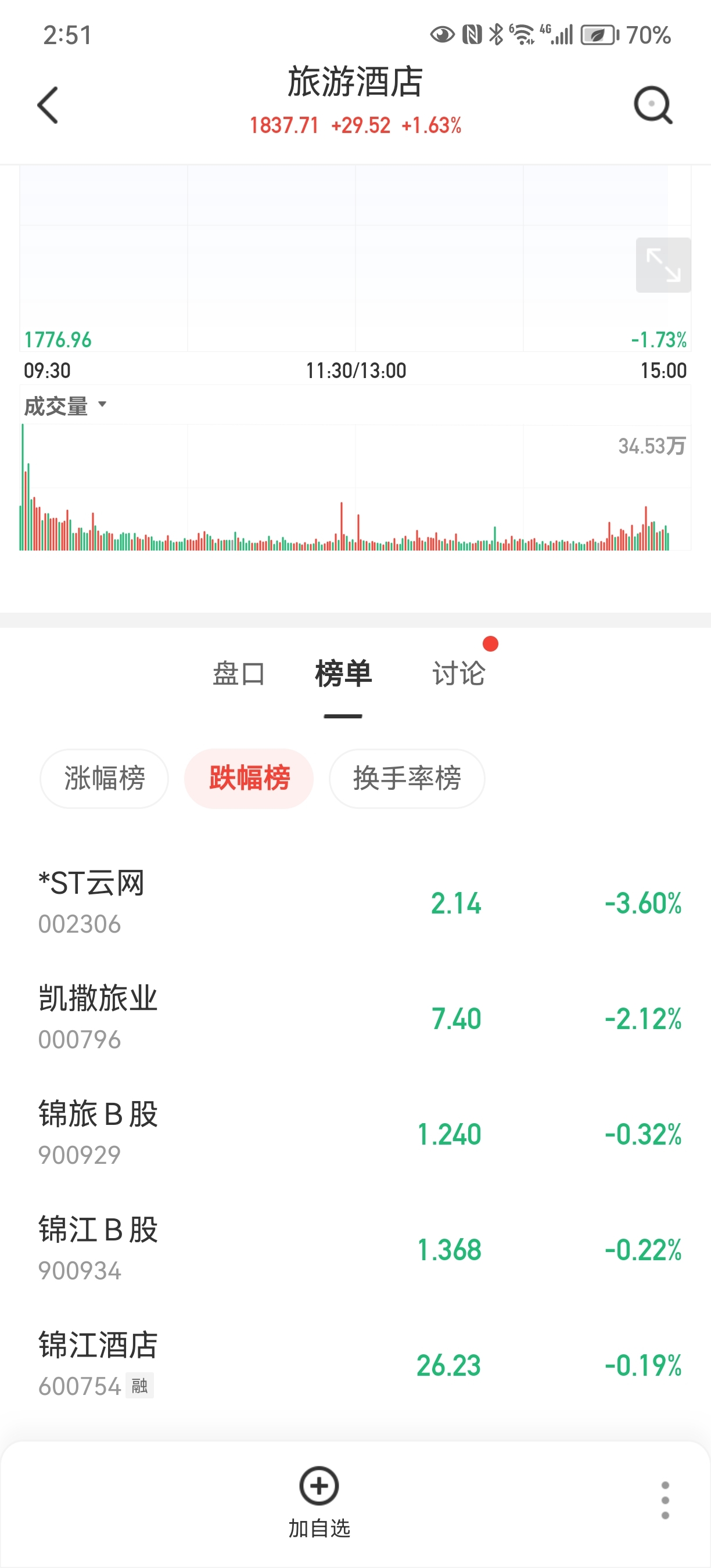 $凯撒旅业(SZ000796)$ 板块倒数第二