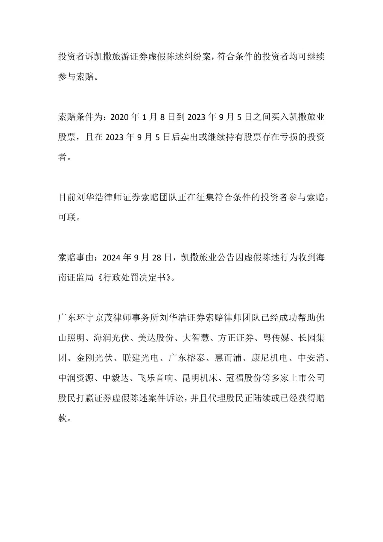 两年多前凯撒旅游受损投资者有望索赔