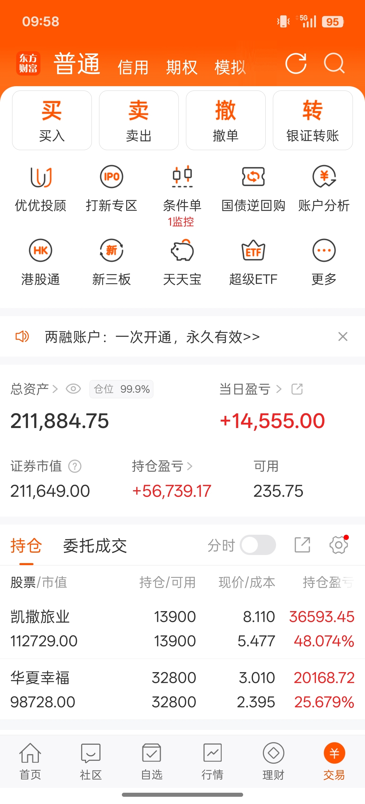 $凯撒旅业(SZ000796)$ 加油啊,别搞得被另外一个仓追上来了