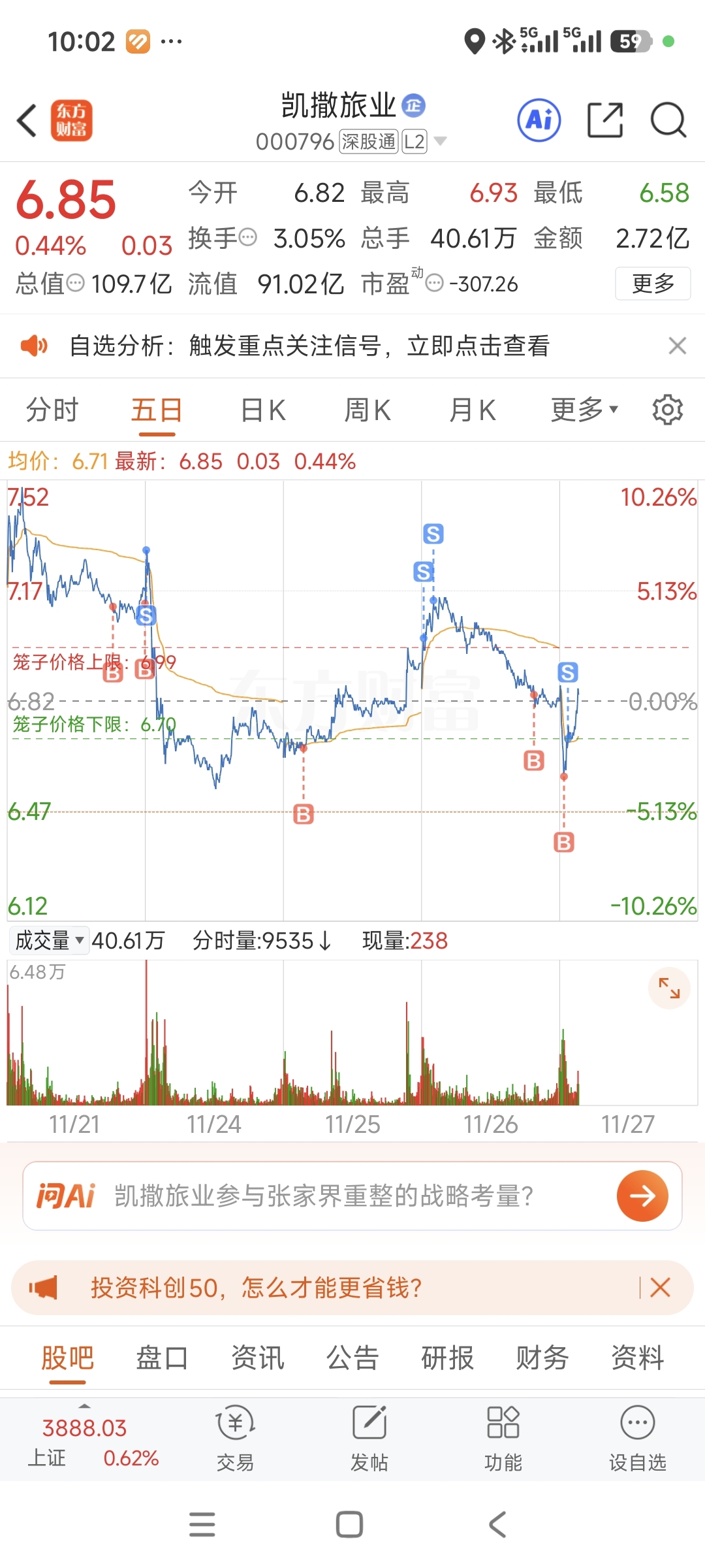 也是服了,昨天进的,今天6.95没跑出去,挂了6.58又买了半仓,6.7给吓跑了