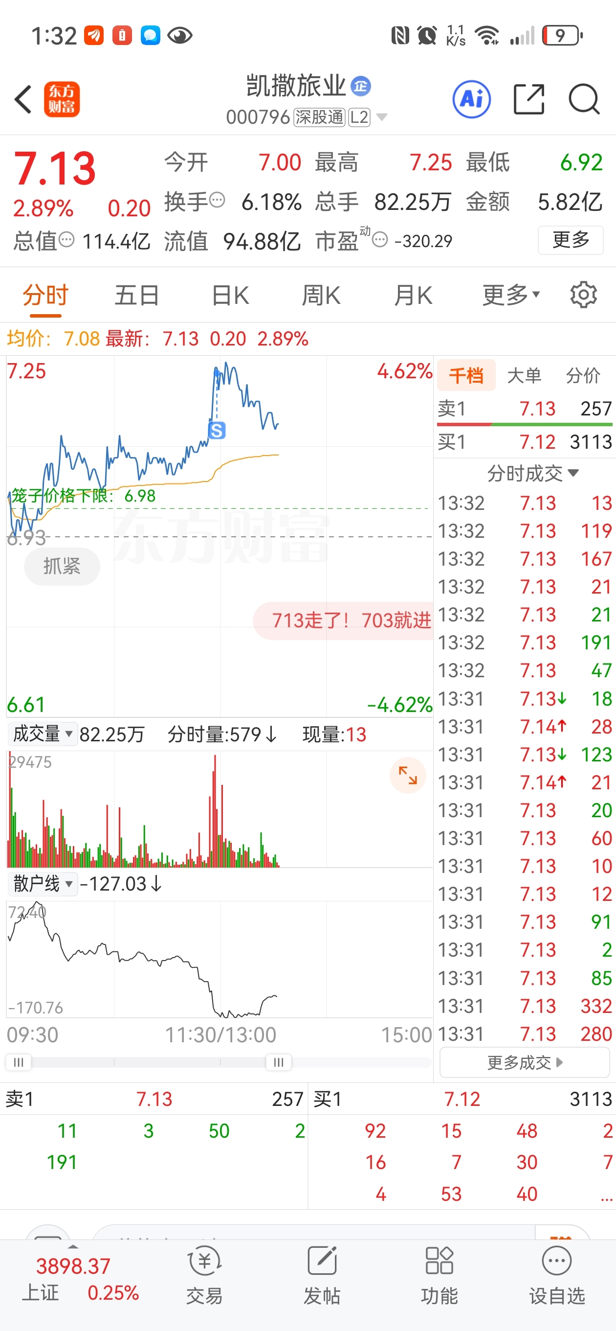 $凯撒旅业(SZ000796)$ 每天一T,只赚钱有限的利润