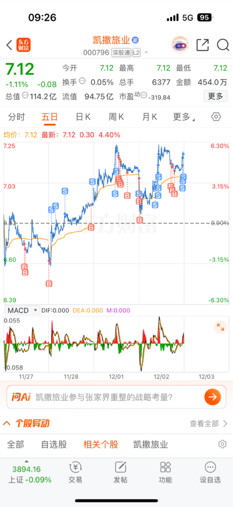 $凯撒旅业(SZ000796)$ 凯撒旅业,真的是好股,昨天尾盘卖的今天开盘都接回来了,每天踢不踢停
