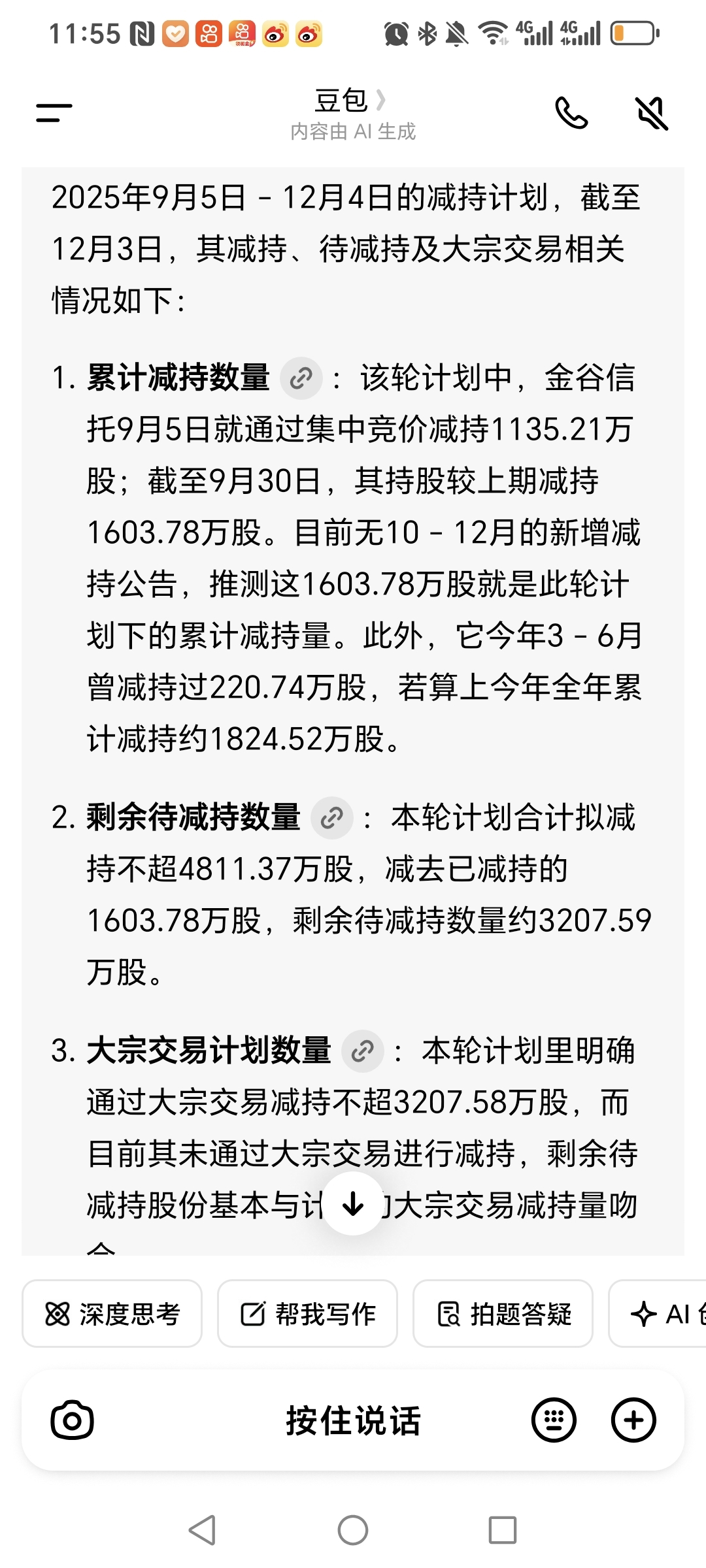 竞价都减完了,余大宗的,那今天几笔大资金砸盘是主力故意砸下来的
