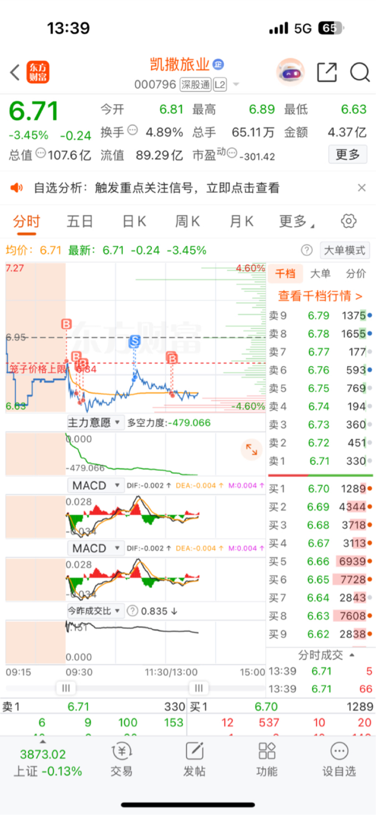 $凯撒旅业(SZ000796)$ 凯撒旅业,成功发套了,昨天尾盘卖的,今天买进来都套住了