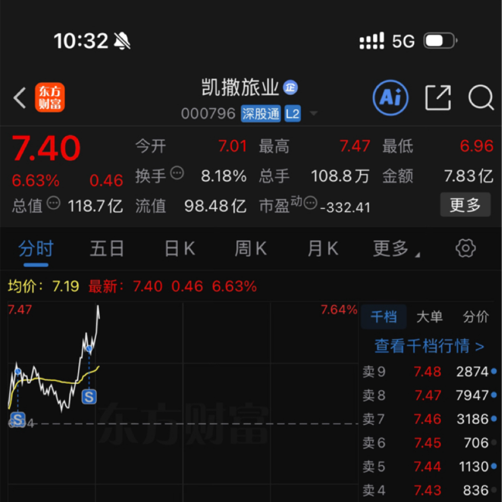 $凯撒旅业(SZ000796)$ T苟被洗了