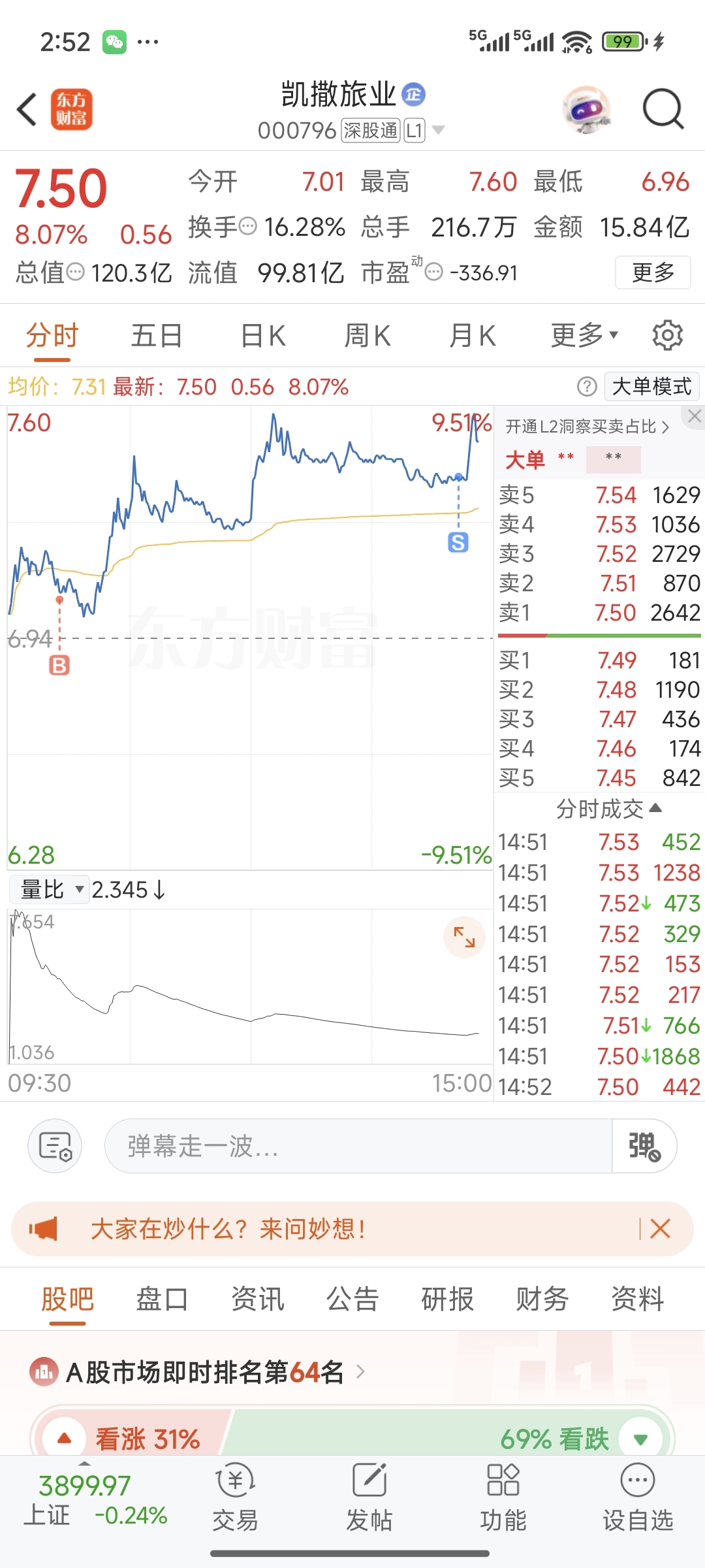 这主力这么看的起我这几百股,瞬间我觉得自己牛的很了