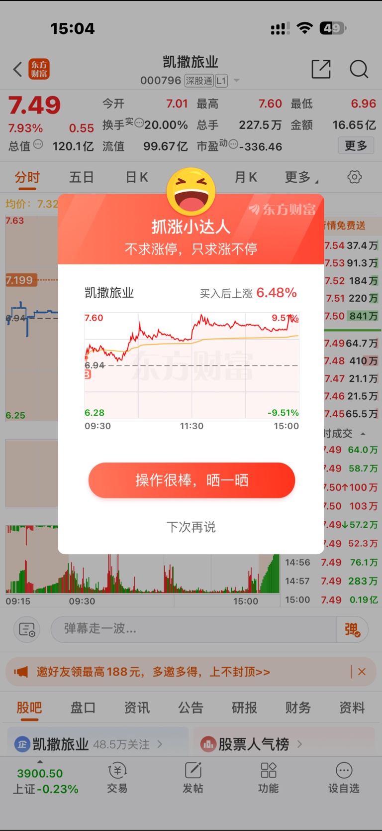 $凯撒旅业(SZ000796)$ 拿了一个月,天天做t终于回本了