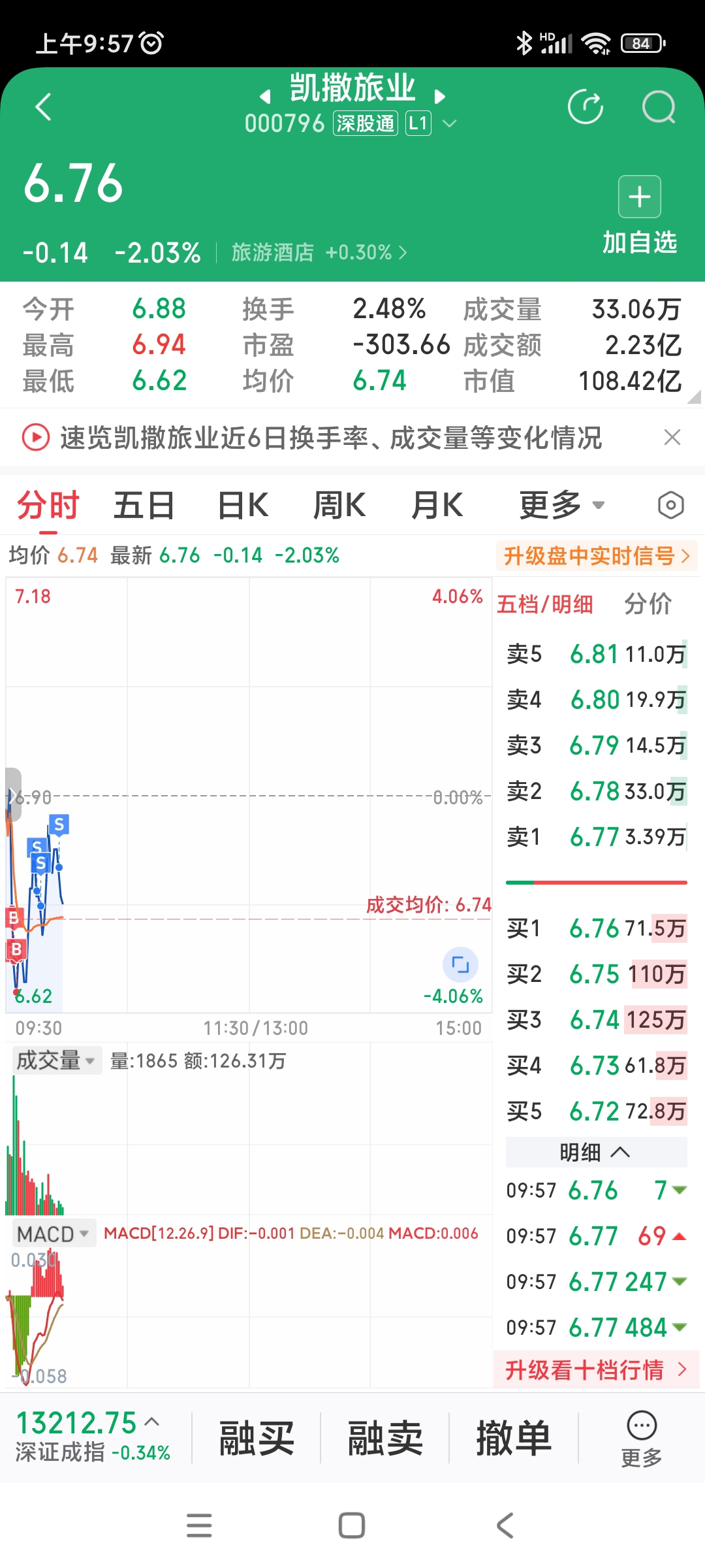 $凯撒旅业(SZ000796)$ 跟恶庄一起进退,哈哈哈哈,来吧。