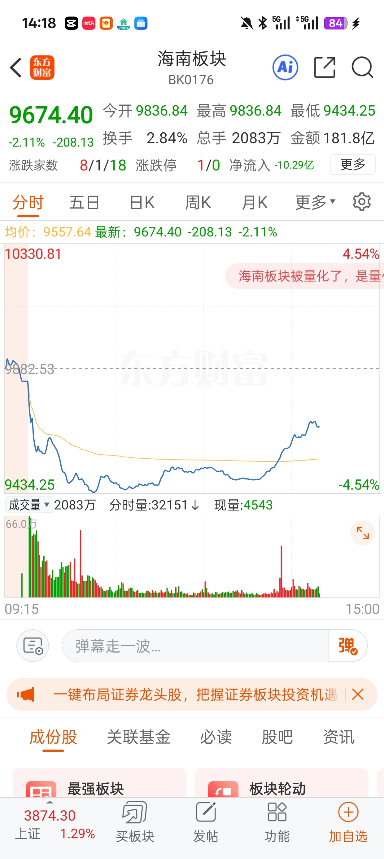这股今天跟着海南板块走的,海南今天不起来他也起不来了