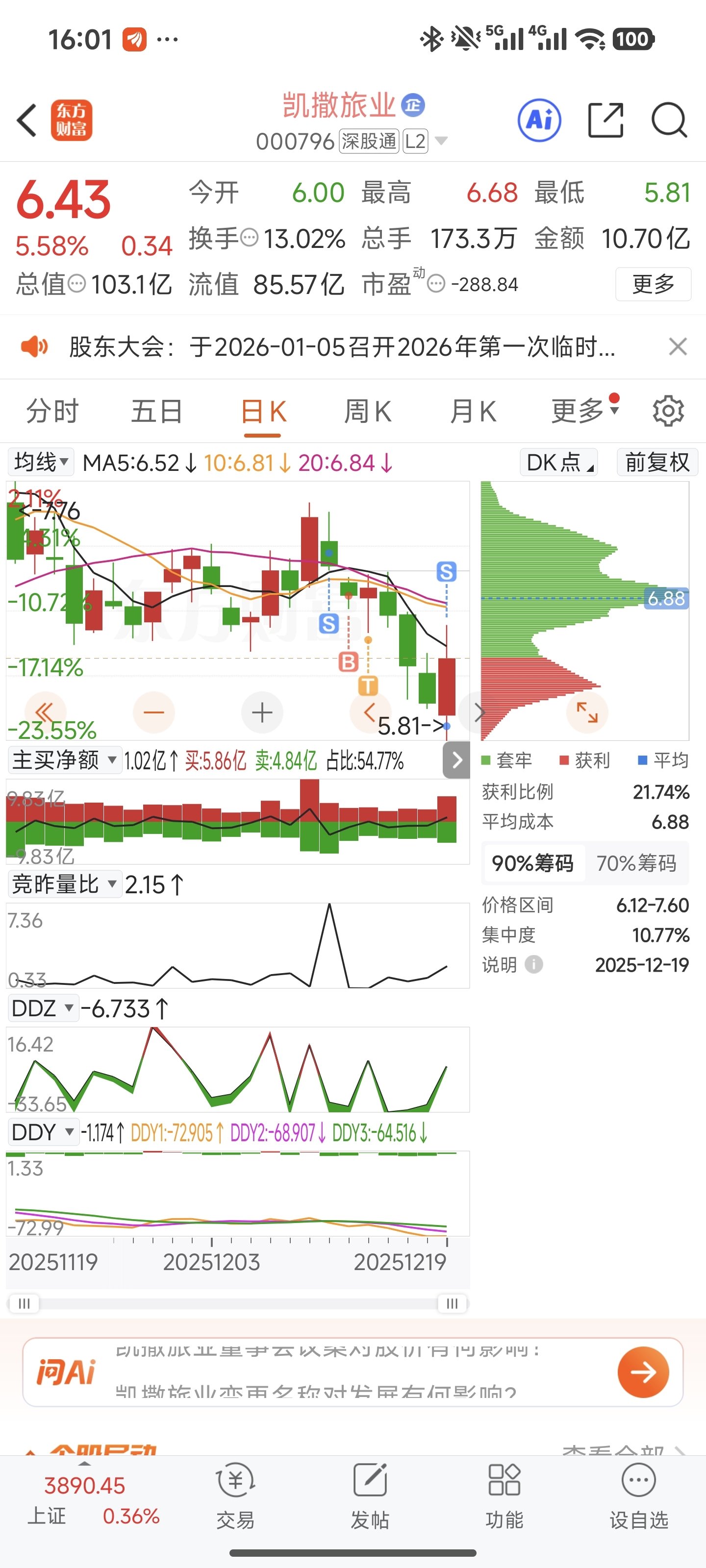 $凯撒旅业(SZ000796)$ 呵呵,早盘卖了立马涨