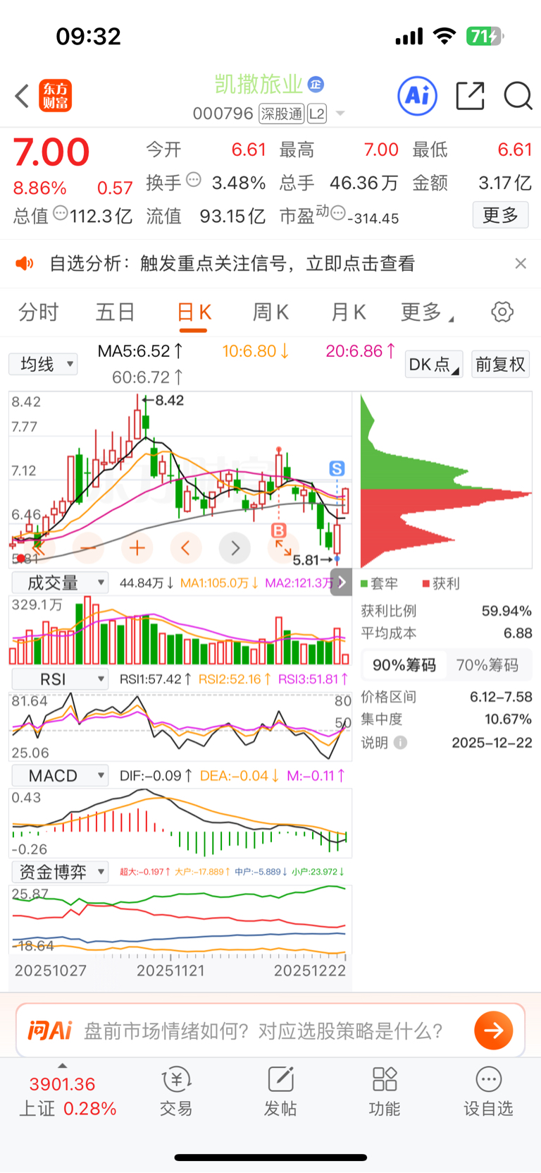 $凯撒旅业(SZ000796)$ 抄底都抄不到割肉这么精准的低价