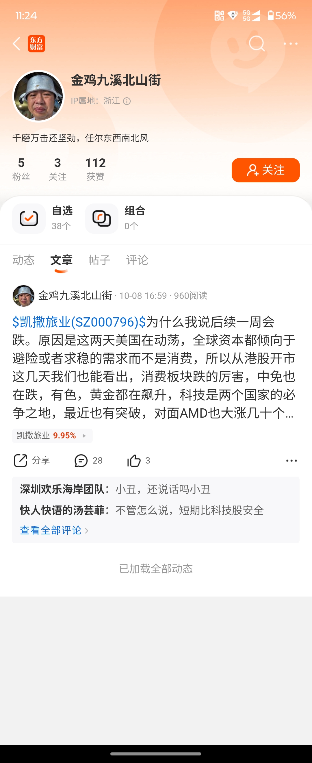 $凯撒旅业(SZ000796)$ 这个天天唱衰的丑八怪今天没看到了