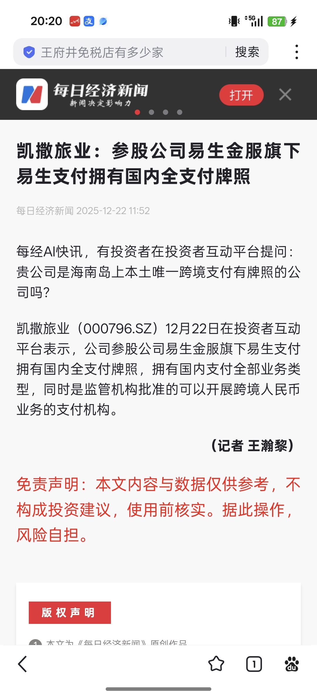 $凯撒旅业(SZ000796)$ 凯撒大帝才是真正跨年龙!集海南旅游+免税店+跨境支付为一体!