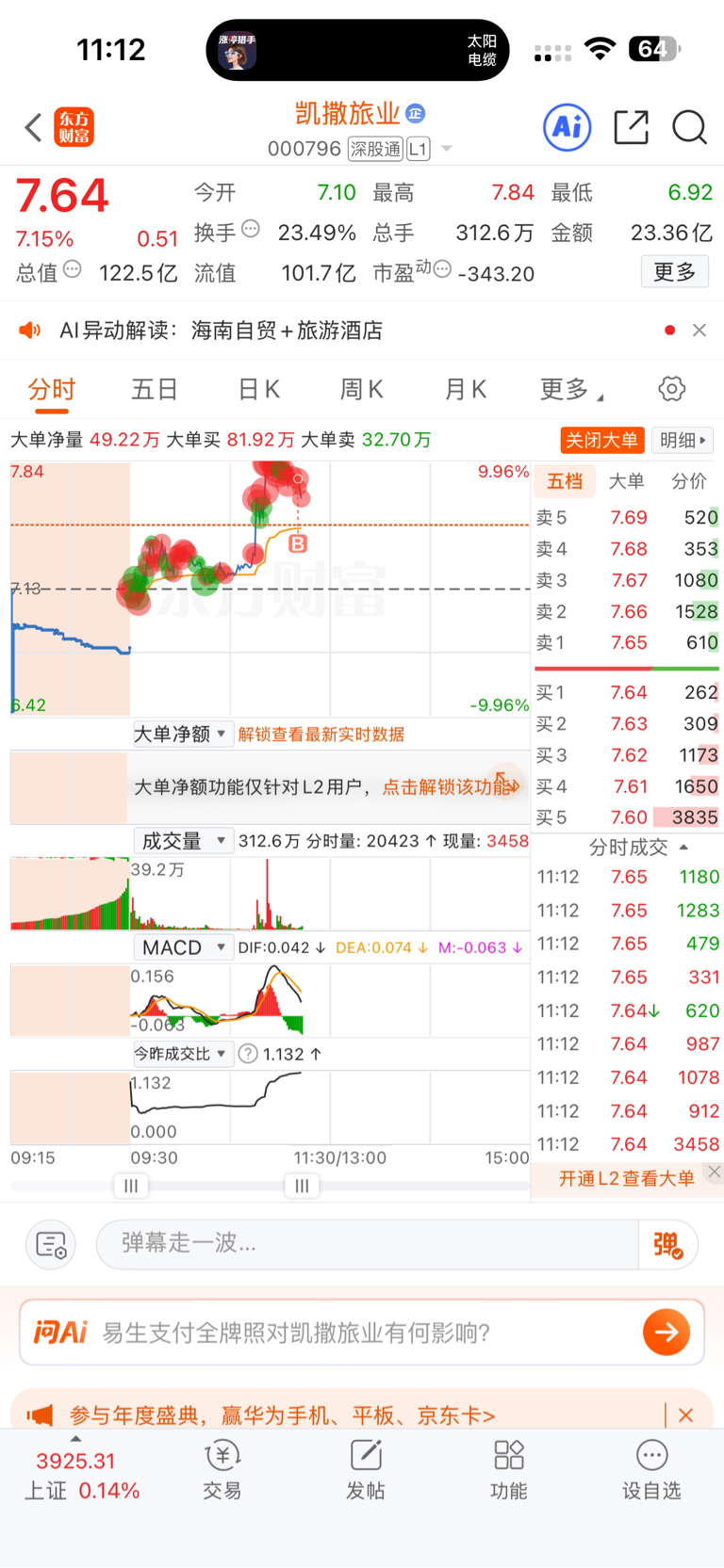 $凯撒旅业(SZ000796)$ 我卖了海南机场,支持一下,你们加油