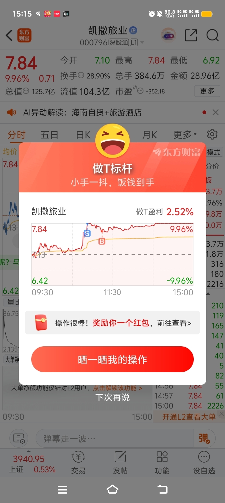 $凯撒旅业(SZ000796)$ 做了个小T,怕卖飞赶紧接回来了