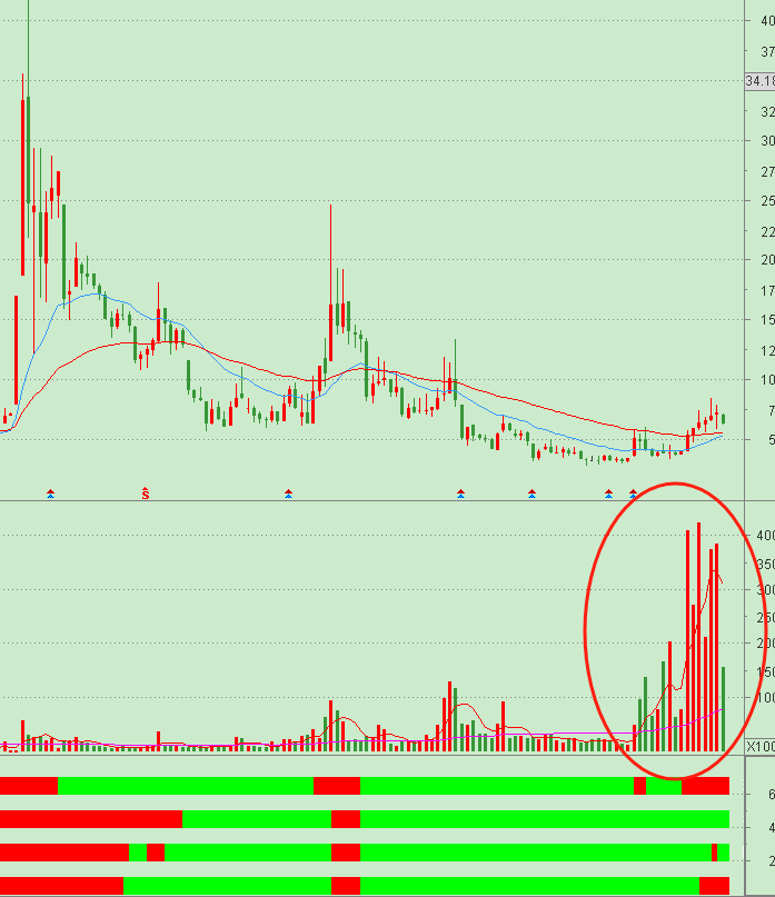 月线底部大堆量,做长线的翻倍不成问题,但是大多数拿不住,底部月线带量六连阳很明显的反转形态