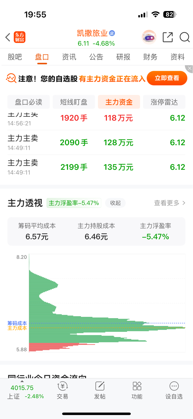 $凯撒旅业(SZ000796)$ 主力成本6.46
