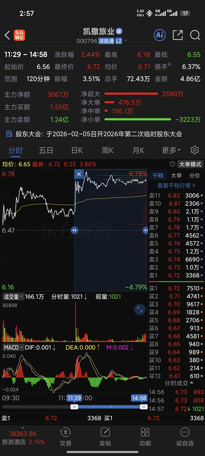 $凯撒旅业(SZ000796)$ 72万手占实际流通盘百分之6.4的筹码峰,平均成本6.71,老庄有点格局明天开盘搞偷袭往涨停打,这70万手散户就是最坚实的底部