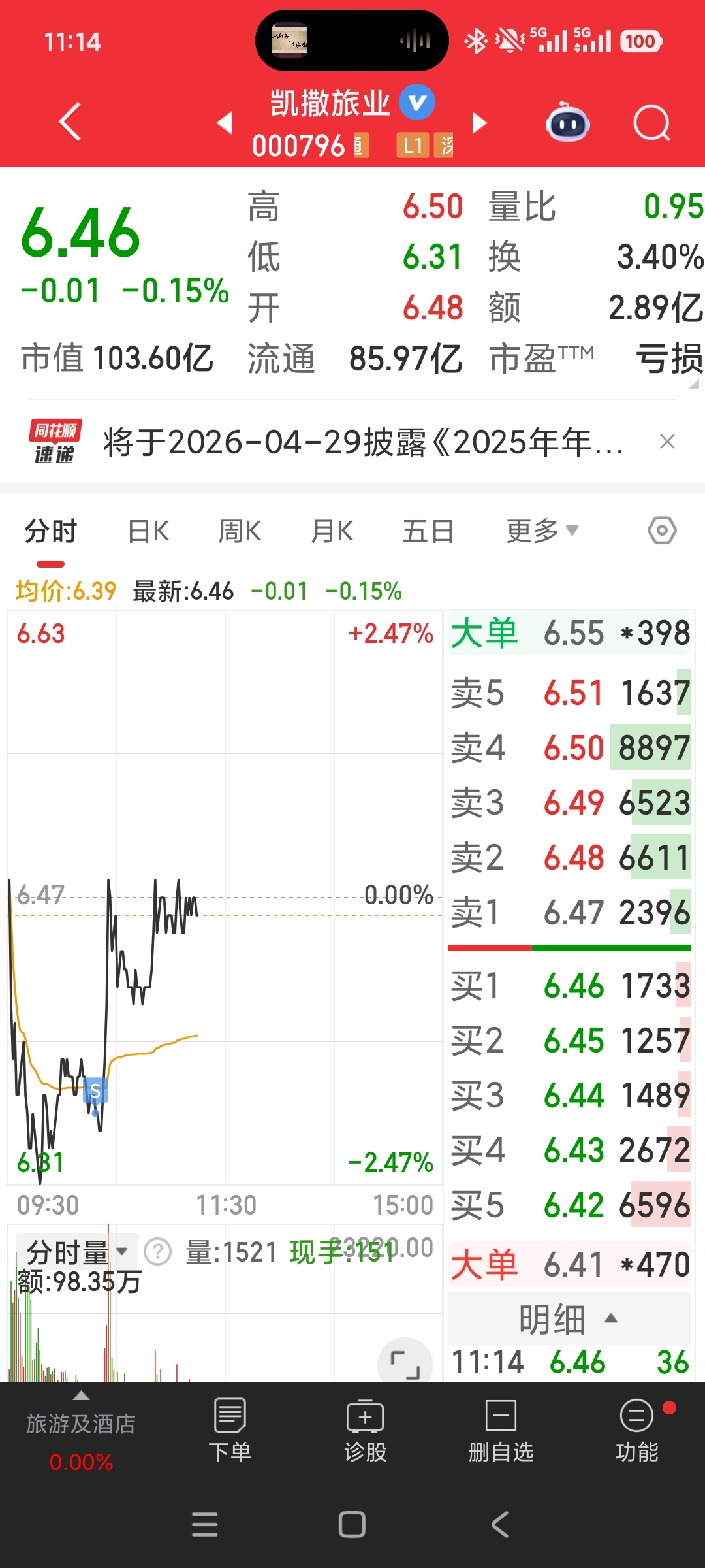 $凯撒旅业(SZ000796)$ 每次一买就跌,一卖就拉,贱主力就盯着我这仨瓜俩枣