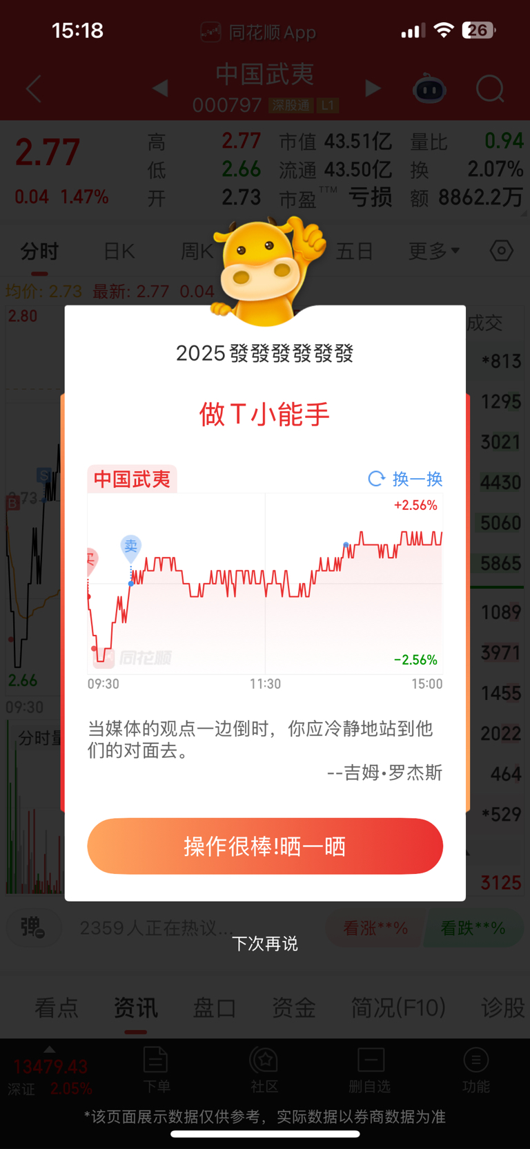 $中国武夷(SZ000797)$ 2.68接的2.76T干净了明天低开接回。