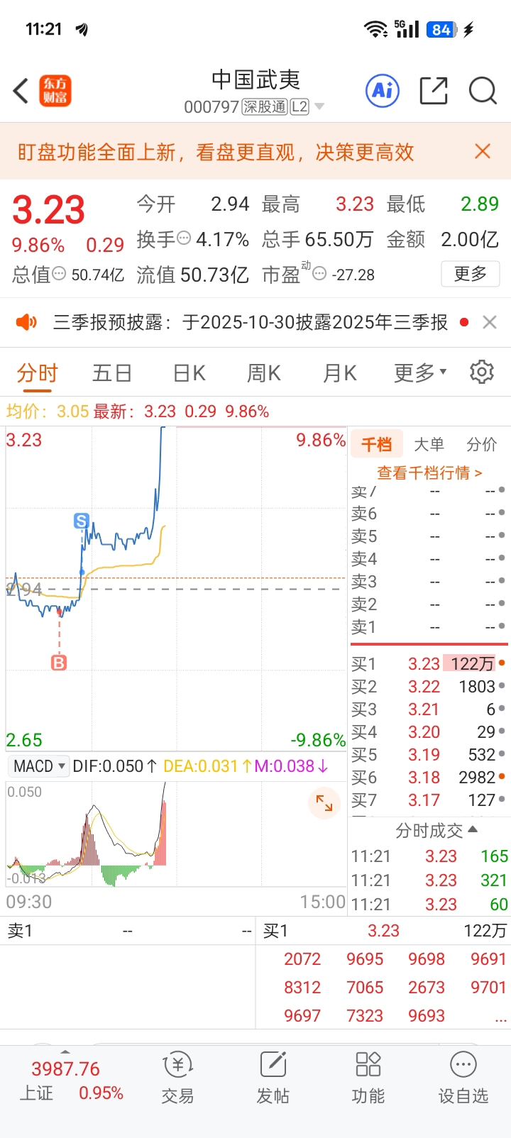 $中国武夷(SZ000797)$ 拿了4个月卖飞了