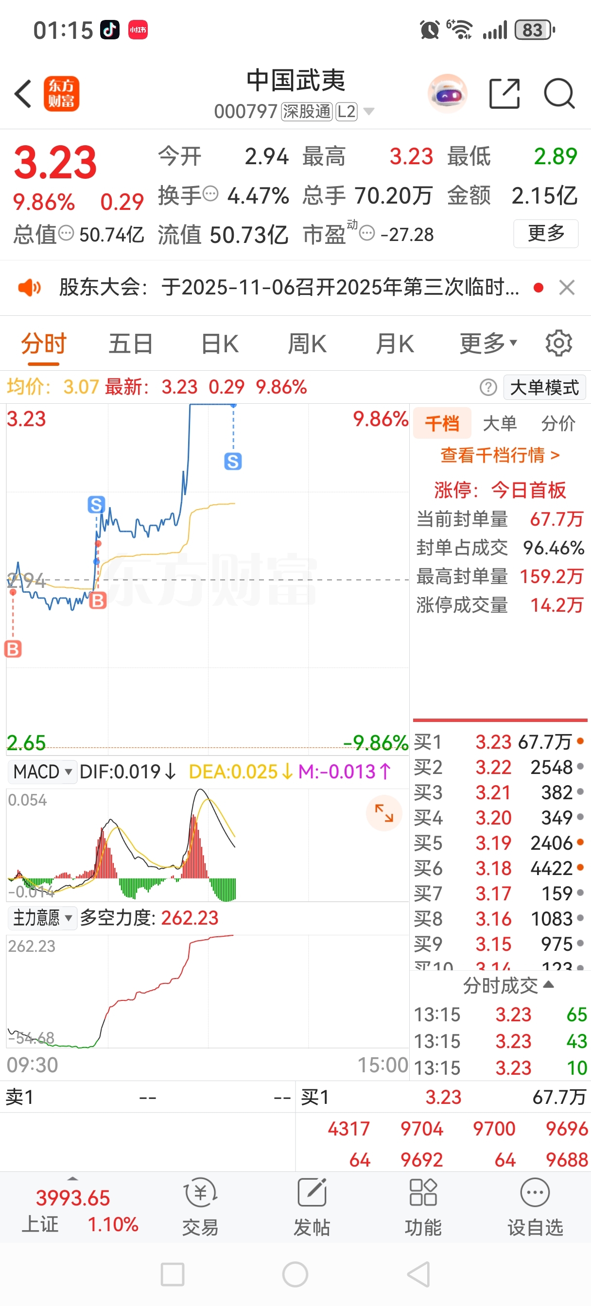 $中国武夷(SZ000797)$ 卖一点 一贯来习惯一日游