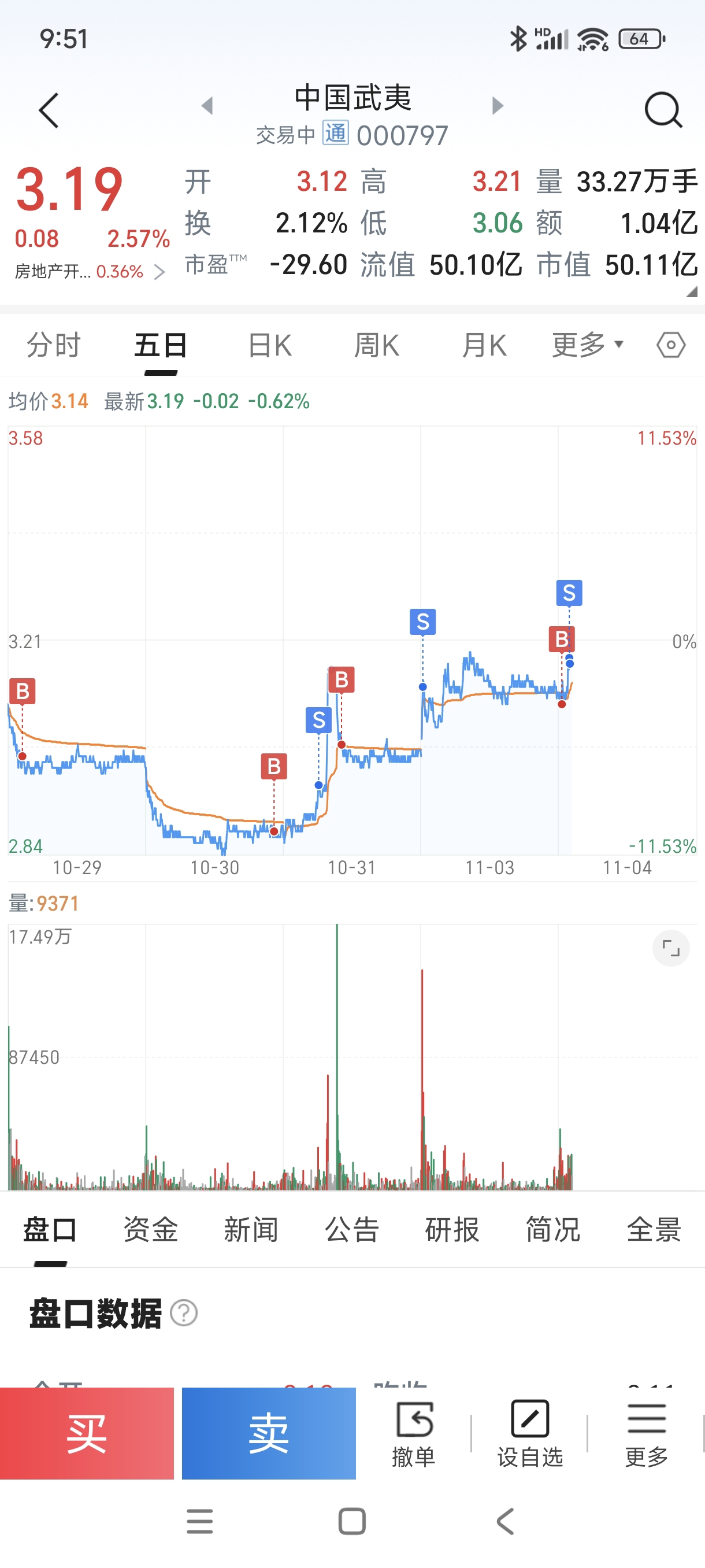 $中国武夷(SZ000797)$ #强势机会# #炒股日记# #实盘记录# #投资干货# 煮力来啊,,,相互伤害啊,,,你敢涨我就敢卖,,,你敢爹我,,就敢买