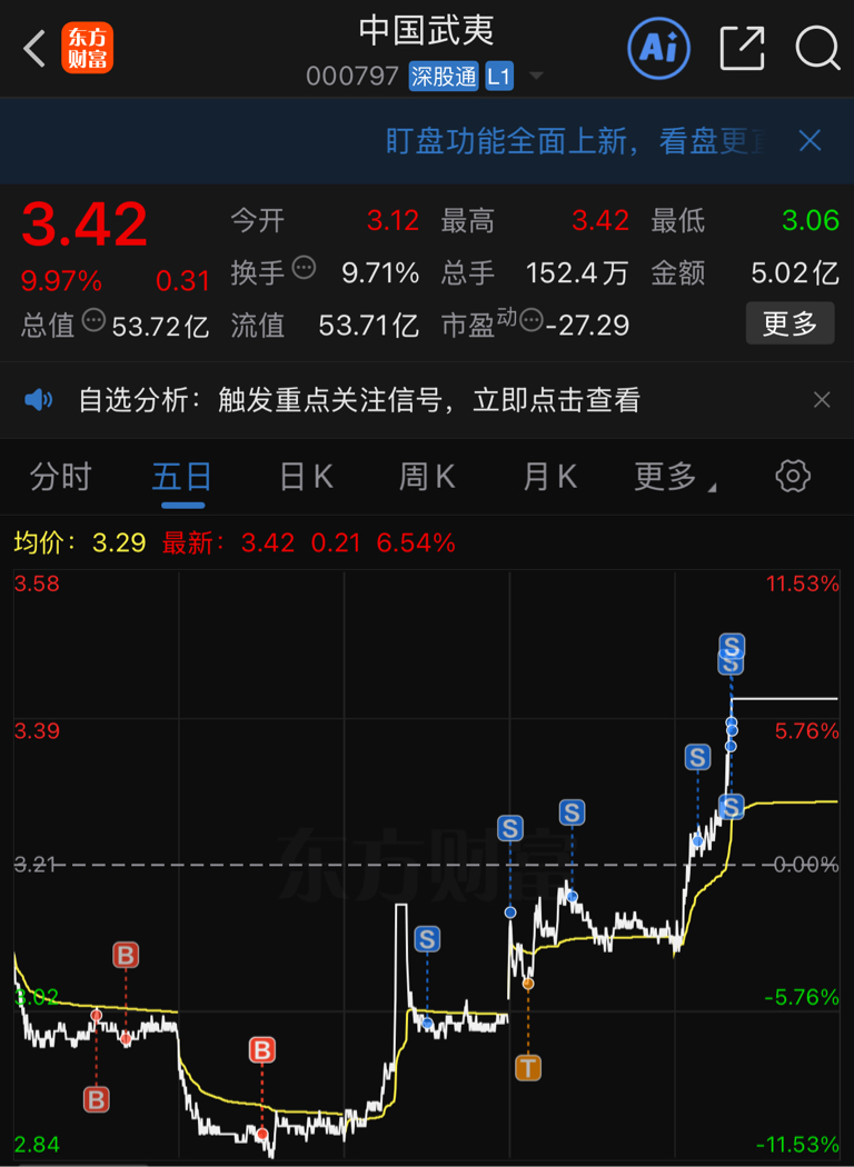 $中国武夷(SZ000797)$ 就是前天忙的没盯盘,涨停那会 没减仓,节奏有点出入,不过在这里赚了走了,后面涨到天上去跟我没关系,今天取关,剩下的朋友们多多发财